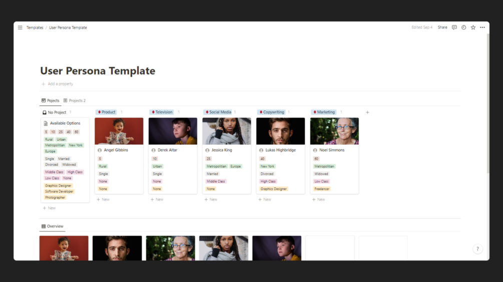 Notion User Persona Template for Designers, Marketers, Managers and Content Creators